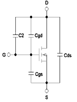 電容充放電快慢決定MOS管開通和關斷的快慢,為確保MOS管狀態間轉換是線性的和可預知的,外接電容C2并聯在Cgd上,如果外接電容C2比MOS管內部柵漏電容Cgd大很多,就會減小MOS管內部非線性柵漏電容Cgd在狀態間轉換時的作用。