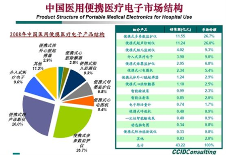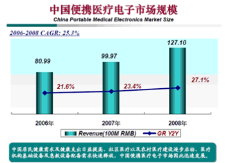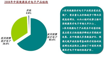 - 2008年國內便攜式醫療電子產品市場的總量達到127億的規模