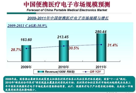 - 未來3年,中國便攜醫療電子市場年復合增長率將超過30%