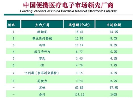 圖6 中國便攜式醫療電子產品市場領先廠商