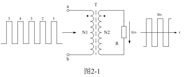 在圖2-1中,當有直流脈沖電壓輸入變壓器初級線圈a、b兩端時,在變壓器初級線圈中就有勵磁電流流過,勵磁電流會在變壓器鐵芯中產生磁通
