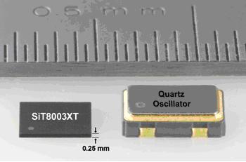 圖3 超薄MEMS振蕩器與一般石英振蕩器的厚度比較示意圖