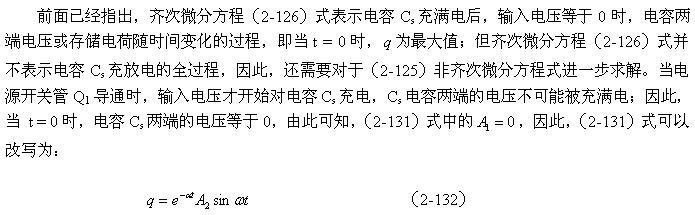另外,非齊次微分方程(2-125)式的解應該等于齊次微分方程(2-126)式的通解與(2-125)式特解之和。