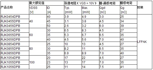 新型功率MOSFET采用瑞薩得到普遍認可的LFPAK(瑞薩科技公司封裝編號)*4高性能封裝。它提供了低封裝電阻和出色的散熱特性,能夠防止元件出現(xiàn)過熱的情況。與傳統(tǒng)的SOP-8或類似的封裝相比,該封裝本身就為產品實現(xiàn)了低損耗。從內部直接連接到導線框上,從而降低了封裝電感,保證了高頻操作的實現(xiàn)。