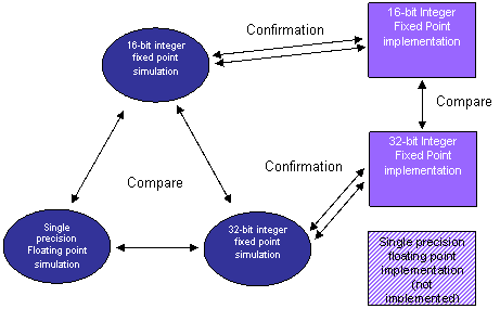 從圖中數值性能的比較可以看出,16位定點系統有若干個偽瞬態 (false transient) 與振鈴,而32 位系統則沒有這些現象。32 位單精度浮點與32 位定點的結果非常相近。