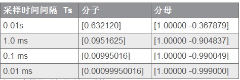 這樣做的目的是為了將內(nèi)部采樣偏移 (inter sample deviation) 控制在可以接受的最小范圍內(nèi)。為說明這種情況,表 1 列出了采樣率變化時對控制器系數(shù)的影響。在此例中,我們將一個簡單的單極點(diǎn)傳輸函數(shù)進(jìn)行了離散處理。(1) 為傳輸函數(shù)的關(guān)系式。