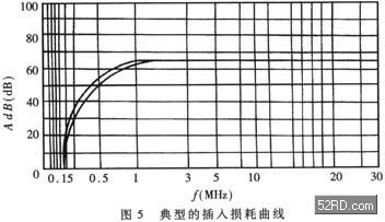 插入損耗用分貝(dB)表示,分貝值愈大,說明抑制噪聲干擾的能力愈強。鑒于理論計算比較煩瑣且誤差較大,通常是由生產廠家進行實際測量,根據噪聲頻譜逐點測出所對應的插入損耗,然后繪出典型的插入損耗曲線,提供給用戶。