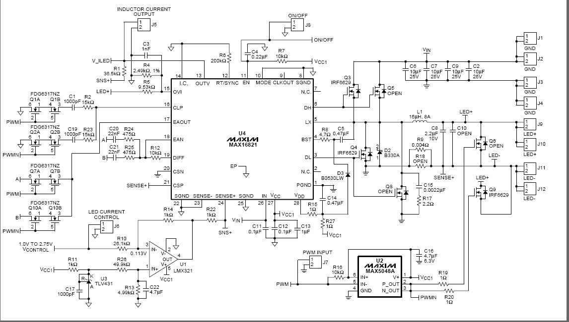 - 使用MAX16821 PWM HB LED驅動器實現降壓轉換
