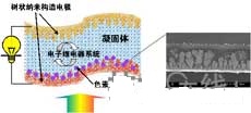 瀨和表示,該太陽能電池的基本發(fā)電原理為色素增感型。只是(1)電解質采用固體而非液體;(2)采用樹狀電極+多孔狀鍍金膜代替ITO等透明電極,可實現(xiàn)基于等離子共振的增感效應,這兩點與之前不同。