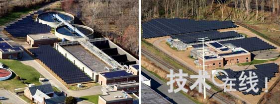 京瓷產品在美國采用的實例 照片中的是新澤西州莫里斯敦(Morristown)的廢水處理設施。設置規模按照輸出功率計算約為511kW(太陽能電池模塊2550片),年發電量約為63萬5800kWh。數據由京瓷提供。