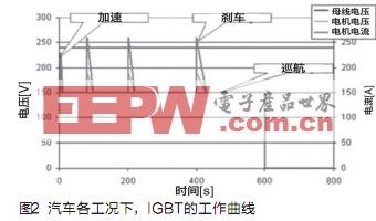 不同于工業(yè)應(yīng)用中電機(jī)拖動(dòng),混合動(dòng)力車(chē)輛驅(qū)動(dòng)工況更復(fù)雜,例如對(duì)應(yīng)城市工況,需要頻繁切換于加速、減速、巡航各個(gè)狀態(tài),因此通過(guò)IGBT的電流、電壓并非常量,而是隨車(chē)輛工況反復(fù)循環(huán)波動(dòng),IGBT模塊需要在電流、電壓循環(huán)沖擊下可靠運(yùn)行。