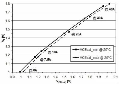 圖8:室溫和不同電流條件下IHW20N120R2的飽和壓降與Vf的關系