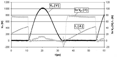 圖11:1.8kW電磁爐應用(IHW20N120R2)的電壓諧振電路波形