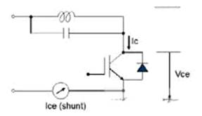 為了測量IGBT的集電極電流Ice,應在發射極和地之間使用超低阻值的取樣電阻器。圖11為Vce和Ic的波形(搪瓷燒鍋負載)。工作頻率為29.1kHz,LC電路在諧振范圍之外(電磁爐的溫度模式為50℃)。
