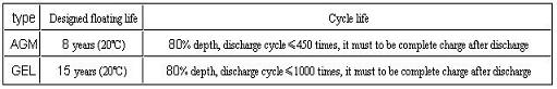 表1:蓄電池放電深度與使用壽命之間的關系(25℃)