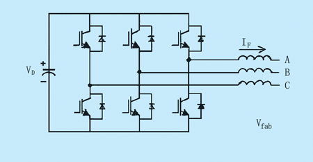 APF是抑制電網(wǎng)諧波和補(bǔ)償無功功率、改善電網(wǎng)供電質(zhì)量的最有效PE裝置。大多數(shù)APF拓?fù)渚秒妷涸茨孀兤鳎⑼ǔR噪娙萜髯鳛橘A能器件如圖1所示。以適當(dāng)選通可控的功率半導(dǎo)體開關(guān),把直流電壓變換成交流電壓。雖然,為合成交流電壓能施加每半周的單脈沖,但對大部分應(yīng)用中要求的動態(tài)性能,今天普遍采用的是脈寬調(diào)制(PWM)。