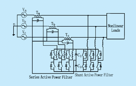 圖7帶并聯(lián)無源濾波器的串聯(lián)型APF拓?fù)?br />