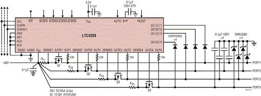 圖1a:采用LTC4258實現的符合基本802.3af標準的PSE電路