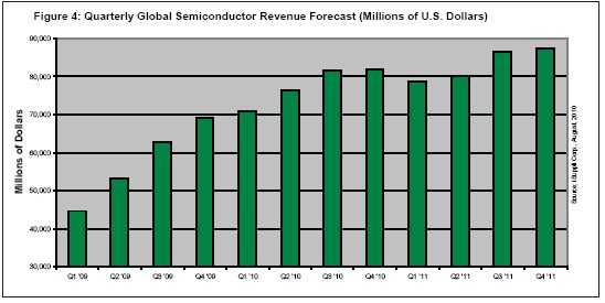 2010年第二季度半導體銷售額環比增長8.2%,預計是今年的高峰增長期。第三季度增速將回落到6.7%,第四季度預計只有0.4%。