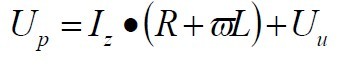 光伏發(fā)電并網(wǎng)運行時的電路原理如圖2所示。Up為逆變器輸出電壓,Uu為電網(wǎng)電壓,R為線路電阻,L為串聯(lián)電抗器,Iz則為回饋電網(wǎng)的電流。為保證回饋功率因數(shù)為1,回饋電流的相位必須與電網(wǎng)電壓的相位一致。以電網(wǎng)電壓Uu為參考,則Iz與Uu同相位,其矢量圖如圖3所示。內(nèi)阻R兩端的電壓UR與電網(wǎng)電壓相位一致,而電抗器兩端電壓UL的相位則落后于UR90º.由此可以求得UP的相位和幅值: