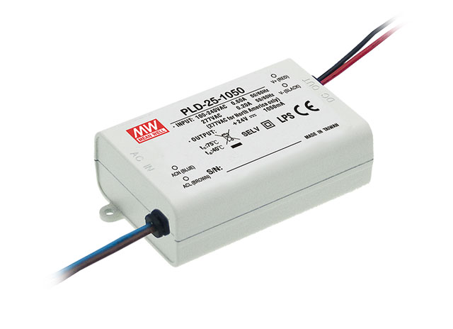 明緯繼完成了LPHC/LPLC-18(18W)、LPC-20(20W)、LPC-35(35W)、LPC-60(60W)等恒流式無(wú)PFC系列機(jī)種后,新推出了一款25W交流/直流具功率因子矯正(PFC)功能之塑料機(jī)殼型恒流式LED電源供應(yīng)器~PLD-25系列,以滿(mǎn)足需求低瓦數(shù)具PFC功能之室內(nèi)LED照明/裝飾光源相關(guān)應(yīng)用。PLD-25可接受90~295VAC交流輸入,除了可使用于一般115VAC或230VAC市電地區(qū),亦適用于北美地區(qū)277VAC之電力系統(tǒng)。