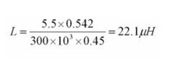 對于升壓型開關(guān)電源的電感值計算,除了占空比與電感電壓的關(guān)系式有所改變外,其它過程跟降壓型開關(guān)電源的計算方式一樣。以圖3為例進行計算,假設(shè)開關(guān)頻率為 300kHz、輸入電壓范圍5V±10%、輸出電流為500mA、效率為80%,則最大紋波電流為450mA,對應(yīng)的占空比為:D=1-Vi/Vo=1-5.5/12=0.542 (7)