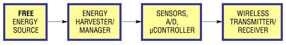 免費能源 能量收集器/管理器 傳感器、A/D、微控制器 無線發送器 / 接收器