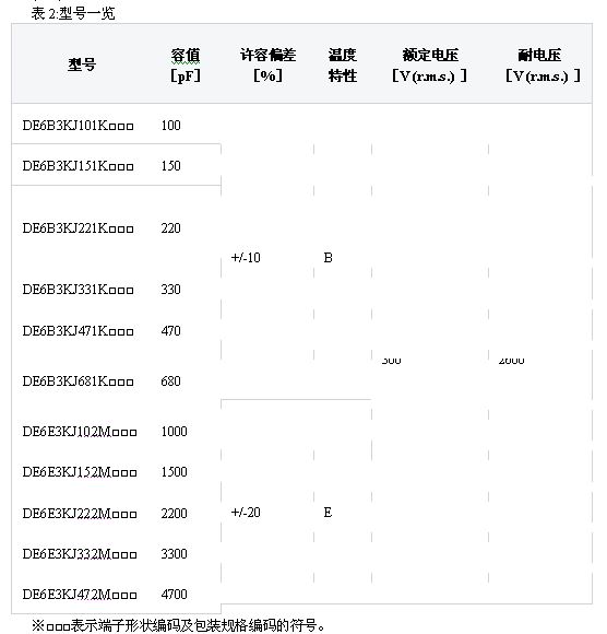 產(chǎn)品線如表2所示,產(chǎn)品結(jié)構(gòu)如圖1所示。產(chǎn)品的容值從100pF到4700pF,另外,額定電壓為AC300V (r.m.s.) 、耐電壓為AC2600V (r.m.s.) /60sec。滿足IEC 60384-14所規(guī)定的實(shí)驗(yàn)條件,通過新樹脂材料的絕緣涂裝,提高了耐溫度循環(huán)特性,能夠成為PHEV以及EV的車載充電器的AC線路濾波器用Y電容器、初級次級耦合用電容器,如圖2所示。