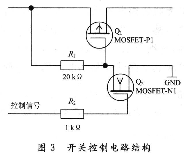 該電源系統(tǒng)各支路的開關(guān)控制主要由場(chǎng)效應(yīng)管構(gòu)成的開關(guān)電路來實(shí)現(xiàn)。實(shí)現(xiàn)該功能的電路結(jié)構(gòu)如圖3所示。