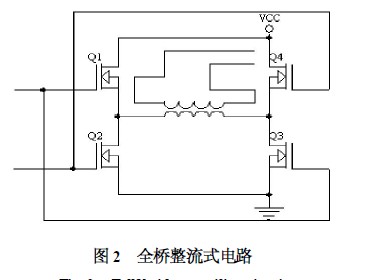 (2) 全橋整流式電路。圖2 所示為全橋整流式電路。該方案采用了4 個MOS 管,工作時對管同時導通,半周期內Q1、Q3 導通,Q2、Q4 截止,然后Q2、Q4 導通,Q1、Q3 截止。這樣的工作方式使每半周期都有2 個MOS 管來分壓,對MOS管的耐壓要求就降低了,適用于高壓場合,但由于使用了4個MOS 管,使得損耗功率增加,開關損耗同時增加??紤]到農業機械一般功率較大,采用該方案必然降低電能利用率,導致大量的能耗損失。