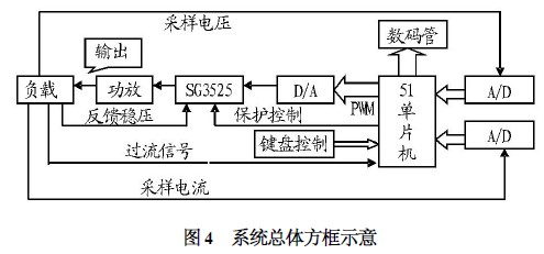 (2) 嵌入式方案。采用51 單片機小系統板對PWM芯片進行控制,并對A/ D 和D/ A 進行控制和采樣。采用以7279 為核心的按鍵掃描顯示模塊進行鍵控和顯示。該方案編程比較容易,控制很方便,顯示也很容易實現。經綜合比較考慮,筆者選擇采用嵌入式解決方案。