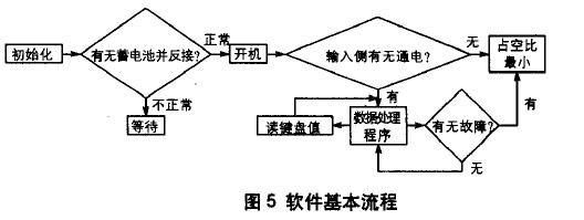 整個回路采用雙閉環的控制系統,正常情況下電壓環的反饋使輸出電壓恒定,一旦輸出電流超出最大值,電流環使輸出電壓降低,輸出電流維持在最大電流值。顯示部分可以由數碼管或液晶組成,本系統中通過按鍵選擇分別顯示電壓、電流、功率、溫度、電能計量等,并通過指示燈指示不同狀態。在運行過程中若出現開路或短路現象,指示燈顯示報警狀態,CPU會立刻啟動保護程序關閉主電路。同時不斷檢測電源內部溫度,防止整機溫升過高。