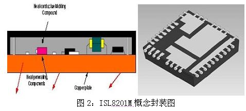 Intersil的ISL8201M模塊集成了一個完整的DC/DC轉(zhuǎn)換器所需的大多數(shù)組件,包括PWM控制器、MOSFET和電感器。其輸入電壓范圍為3-20V,電流能力為10A。它可實(shí)現(xiàn)比傳統(tǒng) SIP DC/DC模塊高得多的開關(guān)頻率,通過不使用MOSFET封裝并將這些組件共同封裝在一個緊湊的15×15×3.5mm的QFN封裝中(見圖2),實(shí)現(xiàn)了極佳的效率和熱性能。ISL8201M是一個系列模塊中的第一個產(chǎn)品,尺寸和性能的進(jìn)一步改善正在開發(fā)當(dāng)中。