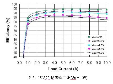 從效率的角度看,ISL8201M實(shí)現(xiàn)了極佳的性能。此外,QFN封裝優(yōu)良的熱性能可以實(shí)現(xiàn)非常緊湊的設(shè)計,而不需要散熱片。這使得ISL8201M達(dá)到了大約200W/in3的功率密度,約為傳統(tǒng)開放式框架模塊的4倍。