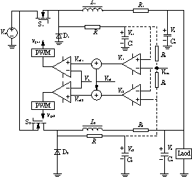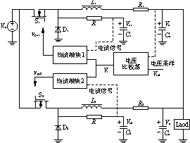 在大功率DC/DC開關(guān)電源中,為了獲得更大的功率,特別是為了得到大電流時(shí),經(jīng)常采用N個(gè)單元并聯(lián)的方法。多個(gè)單元并聯(lián)具有高可靠性,并能實(shí)現(xiàn)電路模塊標(biāo)準(zhǔn)化等優(yōu)點(diǎn)。然而在并聯(lián)中遇到的主要問題就是電流不均,特別在加重負(fù)載時(shí),會(huì)引起較為嚴(yán)重的后果。普通的均流方法是采取獨(dú)立的PWM控制器的各個(gè)模塊,通過電流采樣反饋到PWM控制器的引腳FB或者引腳COMP,即反饋運(yùn)放的輸入或者輸出腳來凋節(jié)輸出電壓,從而達(dá)到均流的目的。顯然,電流采樣是一個(gè)關(guān)鍵問題:用電阻采樣,損耗比較大,電流放大后畸變比較大;用電流傳感器成本高;用電流互感器采樣不是很方便,同時(shí)會(huì)使電流失真。本文提出了一種新型的、方便的、無損的電流采樣方法,并在這種電流檢測方法的基礎(chǔ)上實(shí)現(xiàn)了并聯(lián)系統(tǒng)的均流。
