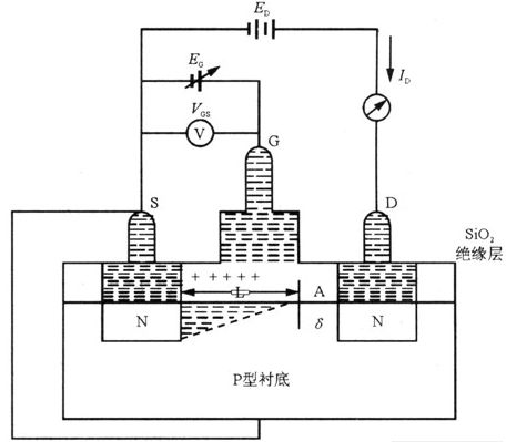 圖1 增強(qiáng)型絕緣柵場效應(yīng)管的結(jié)構(gòu)原理