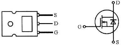 圖7所示為IRFP360的外型及表示符號。它的特點(diǎn),一是具有隔離式的中心裝配孔,并有重復(fù)性的雪崩定額;二是漏源之間并聯(lián)有反向二極管,其電壓變化率定額很大而且驅(qū)動電路比較簡單,此外,同型號的管子并聯(lián)也很容易。然而,由于MOS管的柵極輸人阻抗較高,容易產(chǎn)生較高的感應(yīng)電壓,從而導(dǎo)致柵極易擊穿,所以在維護(hù)中應(yīng)特別注意。