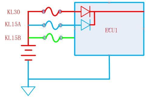 對于我們的模塊,我們會有很多電源線和負載輸入線,由于它們是從不同熔絲出來的,我們在取熔絲不可能把所有的熔絲全部取出,因此有部分負載或者電源是導通的,主電源BATT是一定不通的,我們需要做的就是判斷我們的模塊是否會出現異常狀態,外部負載通過潛在路徑給電源上供電或者導致模塊損壞的情況。