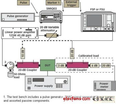 RF晶體管和RF集成電路上的功率測量的復雜性日益增大。在高功率設備性能測量中,最重要的是測量飽和功率,由于很難用CW技術來評估參數,它通常在脈沖狀態下測試。本文介紹的方法消除了用于測量的經典方法中的某些重大缺點。該方法無需外部個人電腦,只使用了Rohde&Schwarz公司的一些SMIQ信號發生器,并利用了如同高動態范圍峰值計量器一樣工作的FSP信號分析儀的一些鮮為人知的性能。