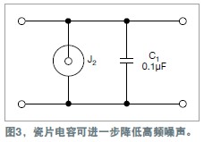 先去掉探頭的外套,暴露出探頭尖。在尖端與地線環之間有一個短的距離。你要在兩種插座中選一個:一種是彎角(或水平的)插座,一種是垂直插座,類似于圖1。將插座的中心腳焊到電源的輸出端,其它腳焊至電源的回線。兩個插座之間焊接一個0.1μF的表面安裝型堆疊式瓷片電容。這個步驟將探頭帶寬限制在大約5MHz,進一步降低了高頻噪聲,而讓較低頻率的紋波通過。圖2給出了完整的連接板,圖3是電路板的一個邏輯圖。將探頭尖端插入插座,測量紋波。于是就能得到一個沒有尖峰或其它噪聲的紋波測量結果。