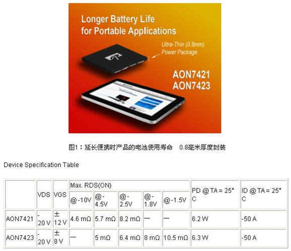新的產(chǎn)品上應(yīng)用了AOS的AlphaMOS專利技術(shù)。這些技術(shù)的好處在于它可以延長(zhǎng)電池的使用壽命,還可以使設(shè)計(jì)變的更簡(jiǎn)單緊湊,適用于便攜式產(chǎn)品,例如:平板電腦、智能手機(jī),電子書、筆記本電腦、數(shù)碼相機(jī)及便攜式音樂(lè)播放器。