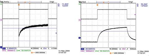 因為電流有些輕微依賴MOSFET的導(dǎo)通電阻,所以有必要在電流接近目標閃光電流時測量 PFET電阻。使用大測試電流的問題是它們可能導(dǎo)致器件發(fā)熱。克服此問題的方法是將閃光超時時間設(shè)置為最低 32ms,并在示波器上測量PFET的電壓降。在+25℃到+125℃的情況下,使用1.2A閃光電流,結(jié)果顯示的斜率大約為 0.42mΩ/℃ 。要注意的一個事情是PFET通過VOUT引腳供電,因此VOUT=5V時,其導(dǎo)通電阻會低于VOUT=3.9V時的電阻值。