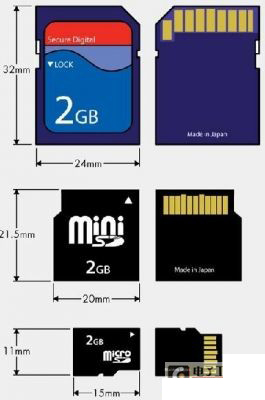 圖2:SD卡、mini SD卡和 micro SD卡的外形大小。
