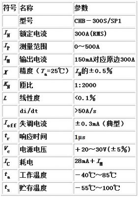 表1 CHB-300S型霍爾傳感器的主要性能參數