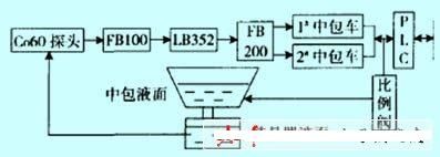 在液位控制儀中轉(zhuǎn)換成標(biāo)準(zhǔn)信號(hào)后送到plc和上位機(jī)的過程中,考慮到意外情況下不能關(guān)閉中包塞棒,增加了一套信號(hào)傳輸通道fb200,一旦一路發(fā)生中斷,可在不到3s的時(shí)間內(nèi)投運(yùn)另一路。plc和上位機(jī)在完成監(jiān)控功能的同時(shí)輸出信號(hào)到液壓比例閥,在plc輸出信號(hào)一定的前提下,重點(diǎn)研究了比例調(diào)節(jié)閥內(nèi)放大旋鈕的配合,掌握了放大和振幅之間的線性關(guān)系,可實(shí)現(xiàn)中包塞棒液壓缸的振幅調(diào)節(jié),進(jìn)而實(shí)現(xiàn)結(jié)晶器液面的調(diào)節(jié),達(dá)到液面檢測(cè)和調(diào)節(jié)的閉環(huán)控制,最終實(shí)現(xiàn)整個(gè)l1級(jí)的閉環(huán)控制,如圖2所示。