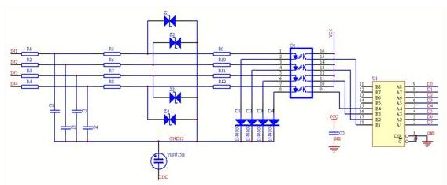 印制板設計時,要考慮到干擾對系統的影響,將電路的模擬部分和數字部分的電路嚴格分開,對核心電路重點防護,將系統地線環繞,并布線盡可能粗,電源增加濾波電路,采用DC-DC隔離,信號采用光電隔離,設計隔離電源,分析容易產生干擾的部分(如時鐘電路、通訊電路等)和容易被干擾的部分(如模擬采樣電路等),對這兩種類型的電路分別采取措施。對于干擾元件采取抑制措施,對敏感元件采取隔離和保護措施,并且將它們在空間和電氣上拉開距離。在板級設計時,還要注意元器件放置要遠離印制板邊沿,這對防護空氣放電是有利的。樣電路的原理圖設計參見圖1。