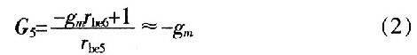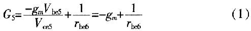 式中,gmVbe5前面加負號的原因為:此電流源增大時Vce5是減少的。化簡式(1)可得: