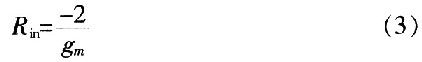 圖3中VQ5,VQ6管的負跨導可以補償振蕩中的電路損耗,為振蕩提供能量。控制電壓Vr控制變容二極管電容的變化,以達到控制振蕩頻率的目的。VQ5和VQ6尺寸相同,交叉耦合,忽略溝道調制效應和體效應等二階效應,可得到其等效電路,如圖4所示。