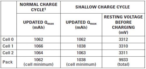 1、電池電壓位于圖 2 所示低關聯誤差窗口內時應該開始一次 Qmax 更新。設計人員的自有算法可用于將電池放電/充電至這一范圍內。
