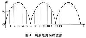 為保證剩余電流測量的實時性,該保護(hù)器采用數(shù)字采樣法測量剩余電流,將剩余電流信號轉(zhuǎn)換為圖4所示的波形,送給P87LPC767單片機(jī)內(nèi)部的A/D進(jìn)行采樣測量。